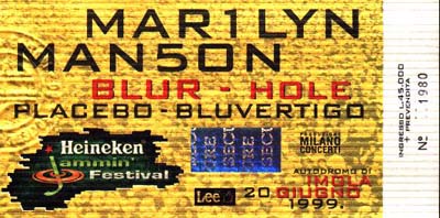 On June 20 th 1999 Hole played at "Heineken Jammin' Festival" in Imola (Italy) in front of 47,000 people. I was there and I can tell you that the Hole's show was terrific . Hole played for 45 minutes ; Courtney was very smart in a white-long dress , and she talked to people several times, asking them to sing the "Italian national anthem" too.